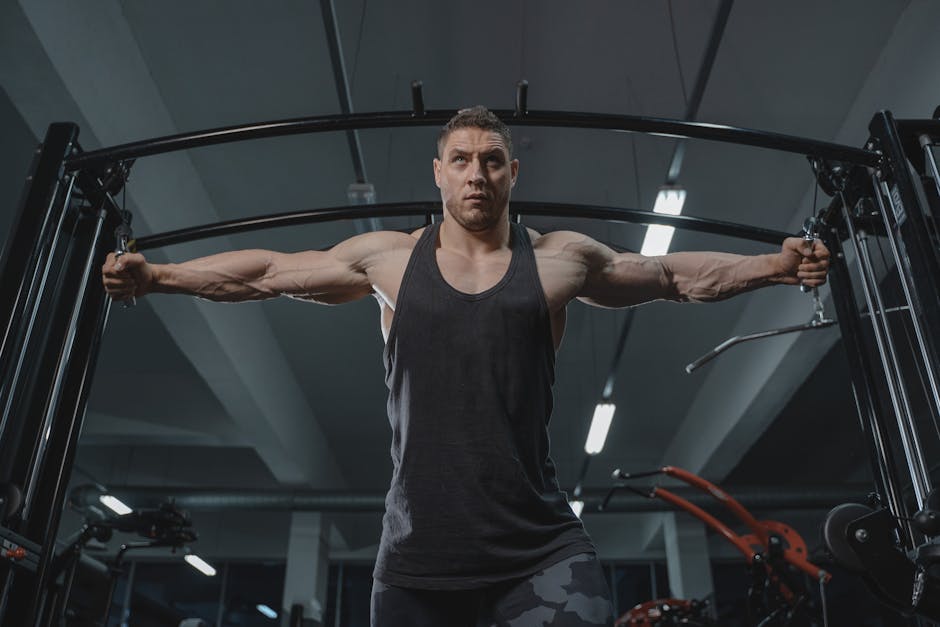 - Resistance Band Flyes: Anchor a resistance band at a high point and perform flyes. Complete 3 sets of 15 reps.